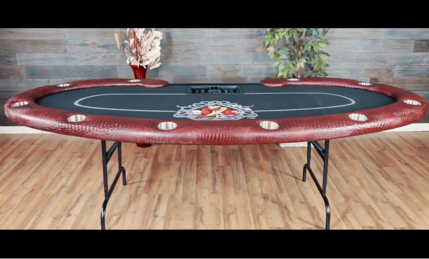 At 100” in length, this poker table can be easily be folded and transported from game to game and be setup again in seconds. This table also features a large assortment of custom options including cup-holders, dealer tray or drop box. No assembly required.