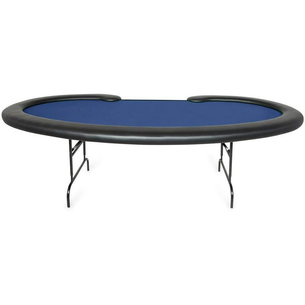 This folding poker table by BBO lives up to its name, being a “Prestige” quality table. The classic kidney bean shape is highlighted by detail and sturdy leg construction. The key feature of this prestige poker table is the removable, custom playing surface.