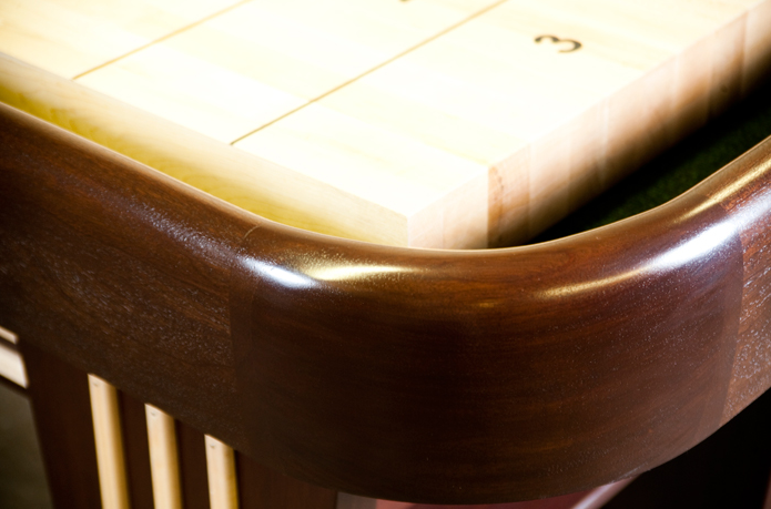 The Chicago Shuffleboard Table was designed by lead artisan, Chris to be styled after the numerous ground up restoration projects involving shuffleboards built in the mid-late 40’s by a small manufacturer based in Chicago, IL. The time spent restoring those antique pieces from near ruin (or ruin in most cases) gave way to the sense of honoring that age and those tables with a stand out design that recognizes the details and enhances them with the newest techniques in finishing and fastening. What more fitting a name than the city where they were originally built, Chicago.
