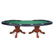 This kidney bean shaped table makes it easier for the dealer to reach all parts of the playing surface.