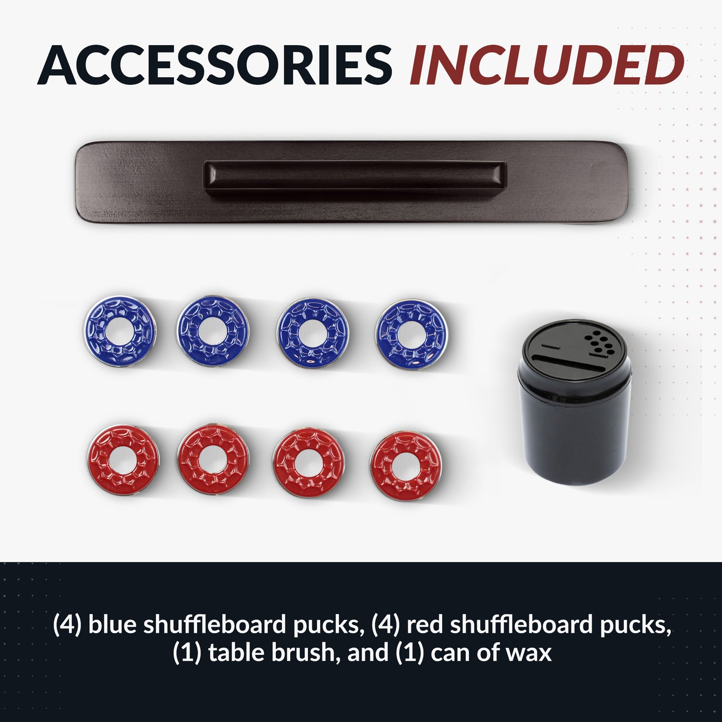 - Four red shuffleboard pucks