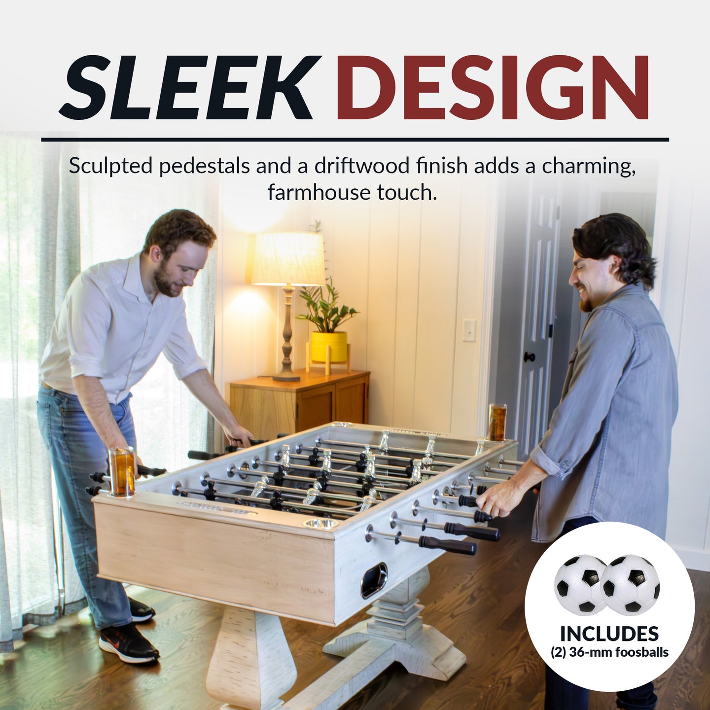 - Two 36mm quality foosballs