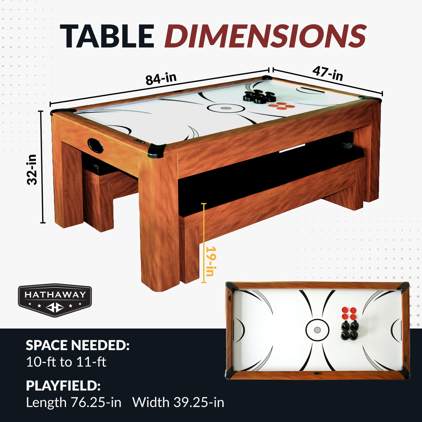 - Playfield Dimensions: 76.25-in (L) x 39.25-in (W) x 0.75-in (Thick)